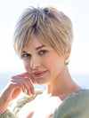 Bay from the Amore Collection is a short, synthetic pixie that is ready-to-wear. This daily wear style has a lace front and a monofilament top for maximum comfort, with a stunning fringe that can be worn on the face or to the side.