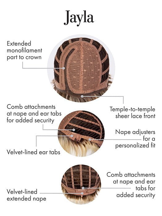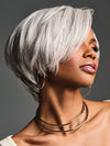 Introducing Jayla by Kim Kimble, a gorgeous asymmetrical short cut with edgy, long side-swept bangs. This wig is the perfect balance between businesswoman and diva with its stunning layers and tapered nape. The temple to temple lace front and monofilament side part allow the appearance of a natural hairline.