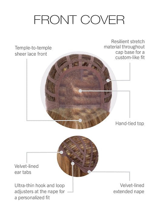 Front Cover by Gabor is from the Designer Series. This long bob wig has subtle layers and made with Tru2Life heat friendly synthetic fiber for endless styling potential. The hand tied monofilament top gives you the freedom to part the hair in any direction. The cap has an extended lace front, velvet ear tabs, and velvet nape.