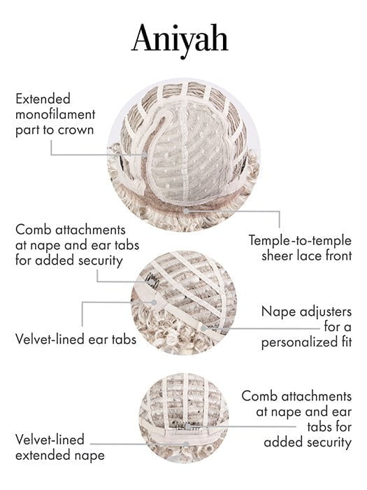 Introducing Aniyah, from The Kim Kimble Collection. This soulful dream girl wig features sassy coiled curls that can be worn straight out of the box or picked out for maximum fullness. The voluminous top and sides taper into a subtle diamond shape, while the monofilament part creates the illusion of hair growing directly from the scalp.