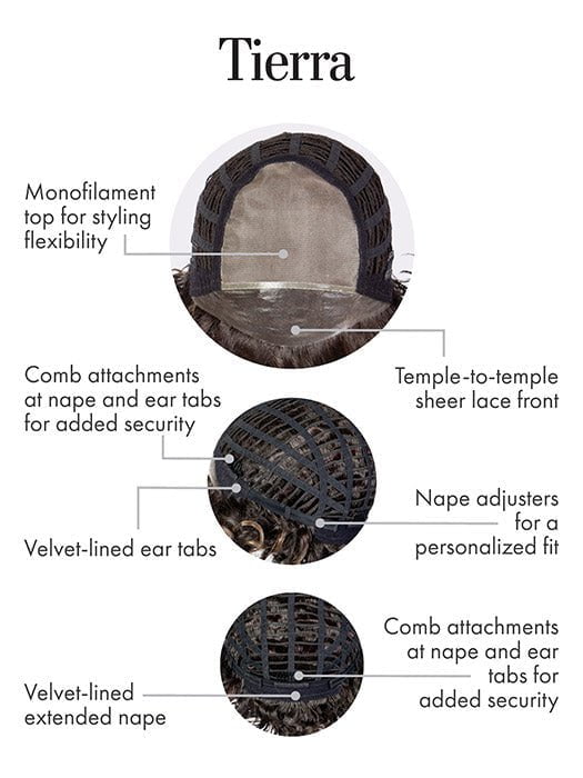 Tierra by Kim Kimble is a bob wig taken to the next level. The unique V-shape at the nape and fullness at the crown add a "center-of-attention" look while still being very wearable and perfect for an everyday wig. The full monofilament top provides flexibility in parting the wig in any way, and the lace front allows you to wear the hair off the face.