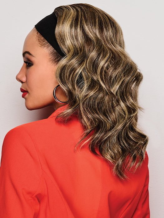 18IN WAVY WAVES HEADBAND WIG by Kim Kimble in MC11SS BUTTER PECAN | Medium Brown with Golden Blonde Highlights