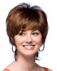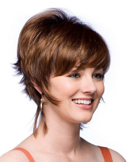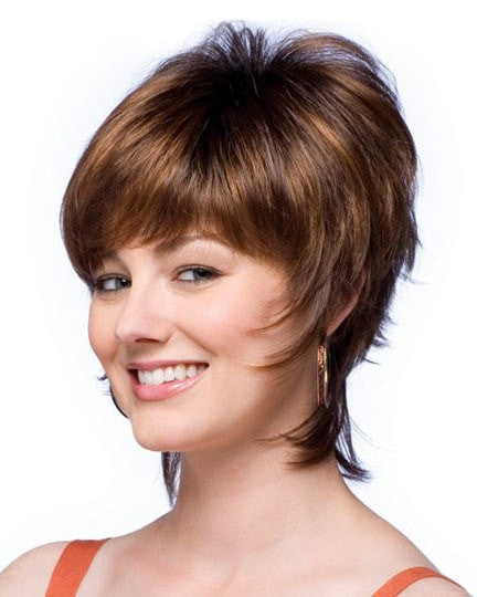 Andi by Noriko is a collar length shag style with lovely layered textured edges and face framing long bangs. This short wig features a hand-tied monofilament top cap with calibrated machine wefting at the sides and back which provides not only versatility styling possibilities, but also the illusion of natural hair growth at the scalp. Note: Andi is also the monofilament version of Millie, another top-selling Noriko style.
