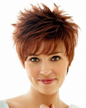 Aria Large by Raquel Welch has short layers in the face-framing sides, and the crown with a smooth extended nape. This attractive short cut epitomizes versatile, no-fuss styling. For some hair looks, styling gel may be required.