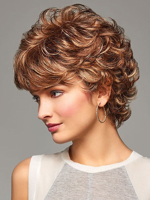 Bailey by Henry Margu is a short curly style. This wig features loads of soft open curls throughout the style for maximum volume and height. Layering throughout the cut gives this style loads of playful movement. The bang area can be worn as a side swept bang or as a full bang. The tapered layers throughout the sides and back can be worn flipped under or flipped out. Watch Henry Margu Bailey video review for more details.