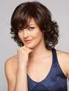 Cat by Ellen Wille is a mid-length wavy wig with a wispy bang. The hair transitions from straight on top to gentle waves and loose curls at the ends. This wig features a monofilament crown and is ideal for a petite head size. The density of the ready-to-wear synthetic hair looks more like natural hair and requires little to no customization or thinning. Cat is part of the Ellen Wille Hair Power collection.