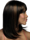 Dawn by Vivica Fox is a 15" straight wig style made of synthetic hair. Featuring feathered bangs and long, straight sides, this African American wig is similar to the Charlie but slightly shorter. The Pure Stretch Cap construction ensures maximum comfort and coolness.Pure Stretch Cap - Open construction with ultra thin and resilient sides improves ventilation. Center Skin Part - The center skin part accents the style and gives the appearance of natural hair growth at the part.  Adjustable Perimeter - Dual elastic sides and adjustable straps in perimeter of cap allow fit to be tightened or loosened up to 1/2 inch.