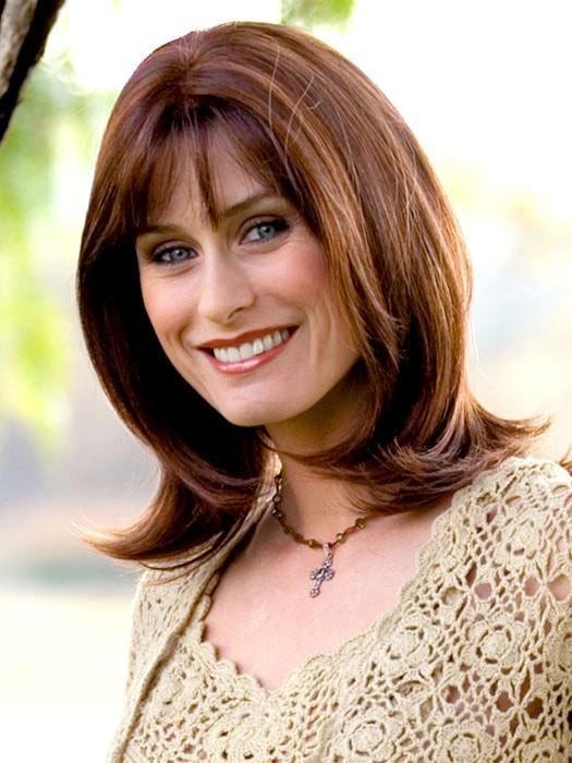 Faye by Jon Renau is a shoulder-length style that tapers to a slight flip with a monofilament top construction for styling versatility.