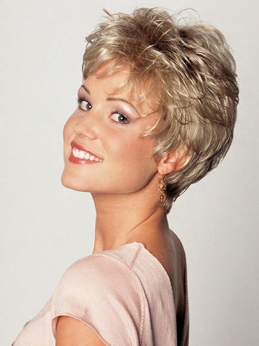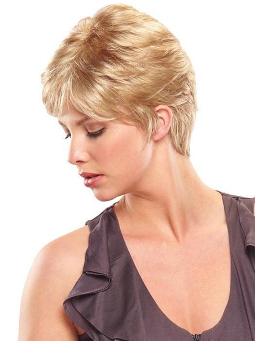 Gina by Jon Renau is a short, pixie cut, layered with fringe bangs. Gina is designed so you may style the wig in various ways- smooth and sleek or fluffed up and breezy. This wig feature a full cap with a velvet front with full lace coverage in the crown area assuring all day comfort.