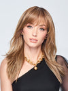 Influencer Inspo by Raquel Welch from the Signature Collection is a new fan favorite! Sleek, stylish and picture-ready from every angle with a light full fringe, monofilament center part, and razor cut textured lengths. This long, layered cut looks amazing anytime, anywhere. Pull into a low ponytail, heat style to add crimps, or clip back into a half-up hairstyle.