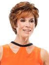 Judi by Jon Renau is a short, textured shag wig with feathered, elegant layers and a tapered neckline. And this polished silhouette looks incredibly natural. The 100% hand-tied stretch cap is completely hand-knotted, creating supreme comfort and natural movement. The double monofilament top provides multi-directional styling and looks like natural hair growth. With the extra layer of monofilament, it’s extremely soft, smooth and comfortable on the scalp. And the ready-to-wear HD (heat defiant) synthetic hair looks and feels like natural hair, plus it can also be styled with heat tools.