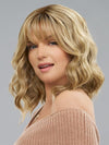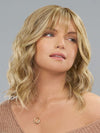 Maeve by Jon Renau offers a natural look with its seamless lace front, low permatease, and monofilament center part. This breezy shoulder-length wig has beautiful beach waves and wispy bangs for a casual look. Part of the HD Collection, the high heat synthetic fiber gives you endless styling potential.