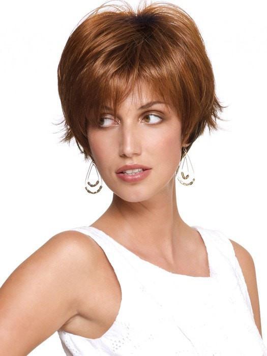 Morgan by Noriko short wig style made of synthetic hair. Featuring a full bang and subtle, but spunky, flared tips at the nape. Made with a traditional cap construction will ensure the volume and style to last all day long. Watch Noriko Morgan video review for more details.