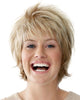 Very lightweight, with less hair fibers; making it nice for a petite face. The style is simple, with no volume. I will try it with some product to spiff it up a bit. I toned down the highlights on top, (mocha mist) with a permanent marker. An excellent buy at close out price.