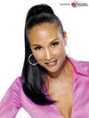The PB-65 by Vivica Fox is a 20 inch silky straight pocket bun. The high heat resistant fiber not only curls well, but also keeps the curl longer to keep the hair look beautiful. The ponytail features a drawstring, secure combs, and honeycomb base. The honeycomb base embraces your own hair safely without dangling while drawstring and secure combs hold the bun tight and securely. Add this bun to your tied hair and just pull the string for a beautiful transformation of your style in a few seconds.
