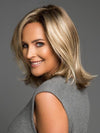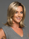 Rosie by Jon Renau is a layered, shoulder-length synthetic wig with choppy layers and wispy ends. The sheer lace front allows you to change your look and style your hair away from the face. The monofilament top is hand-tied and provides multi-directional parting and the look of natural hair growth. This style has natural volume, subtle flips, and a side swept fringe to frame the face.