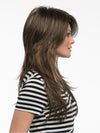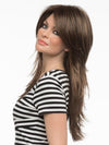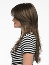 Sheena by Envy is a long, layered, and edgy synthetic wig. With almost 16 inches of long layered locks, this style takes fashion to great lengths. The full hand-tied monofilament top allows you the change the part giving you styling options. The lace front is pre-cut and ready-to-wear. The side bang can be worn away from the face or can be cut by your stylist. The hair is super straight with textured ends, which add a modern appeal. Achieve salon worthy locks in seconds with this long layered cut!