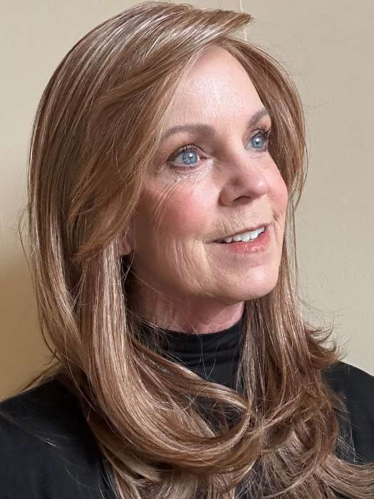 BEST SELLER | Spotlight by Raquel Welch is a long, layered and natural looking wig. Perfectly cut layers give Spotlight movement and body. Made with the Tru2Life heat-friendly synthetic fiber, your styling options are limitless. Wear it straight, curly, or add the perfect wave. The lace front creates a natural looking hairline and allows for styling hair off the face. The monofilament top creates the appearance of natural hair growth and allows you to change the location of the part. And the open wefting in the cap creates better air ventilation, which provides more coolness on the scalp. It's breathable and lightweight for a more comfortable fit. Spotlight is one of our best-selling and most popular styles!