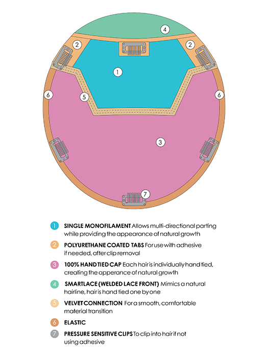 • SMARTLACE (WELDED LACE FRONT) - Mimics a natural hairline, hair is hand tied one by one.