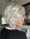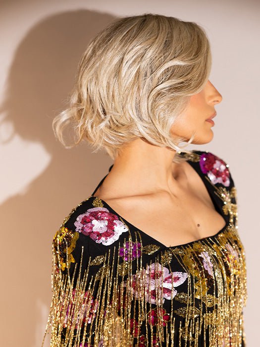 Trend Alert Large from the Designer Series by Gabor is the perfect bob with its lush layers and full volume. The extended mono top is designed to create less volume at the crown. Trend Alert Large can be styled for maximum volume or smoothed for a more subtle look. The Tru2Life synthetic fiber moves beautifully and gives the naturally waved texture depth and dimension.