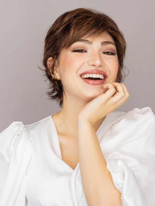 Voltage Elite by Raquel Welch offers the same short, barely waved, all over layered style as our top-selling Voltage wig. This stunning, no-fuss and versatile salon cut now includes a temple-to-temple lace front, a hand-tied monofilament top, and Memory Cap II Base for the ultimate in light, cool comfort!