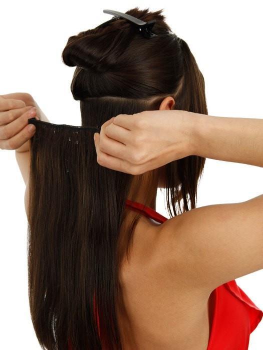 Made from the finest quality 100% Human Hair, each system consists of two multi level systems. The larger tri-level piece adds easy length and/or volume without the hassle of working with several individual wefts. Use this piece by itself or, if you want even longer hair, add the smaller bi-level piece at the nape.