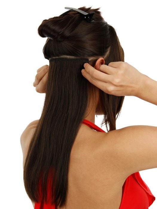 Also included are two 1" wide strips to be used for testing perm and color. Two "duck-bill" hair clips are included for use in attaching the systems. Available in nine color levels and six pre-dyed "salon inspired" colors, these extensions have been specially processed so that they can be professionally colored and/or permed and cut to match any client's needs.