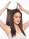 The Circle Extension from LUXHAIR™ HOW™ created by Tabatha Coffey is an 18” one-piece extension on a thin, circular band. You may have heard of flip in or halo extensions, which are similar, but this is really something special. The Circle Extension gives you an instant hair transformation without clips or any other form of adhesive. A two layer weft of 18” hair is attached to an invisible band, which slips around your head to add lush length and natural looking volume in seconds. The hair is revolutionary Keralon ™ light heat resistant synthetic fiber, which allows you to style with heat tools up to 320 degrees. Lightweight, easy to apply and clip-free, the Circle Extension is a whole new kind of hair extension. To apply: