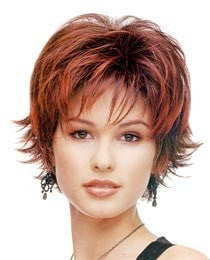 Allison by Amore has short, choppy textured layers with face framing fringe bangs. This wig features a double monofiament cap with a hand tied top construction and machine wefting along the sides and back. The Allison wig has a polyurethane tape tab along the front for all day secure comfort while the base layer at the crown gives the illusion of skin for a more natural looking appearance of hair growing from the scalp.