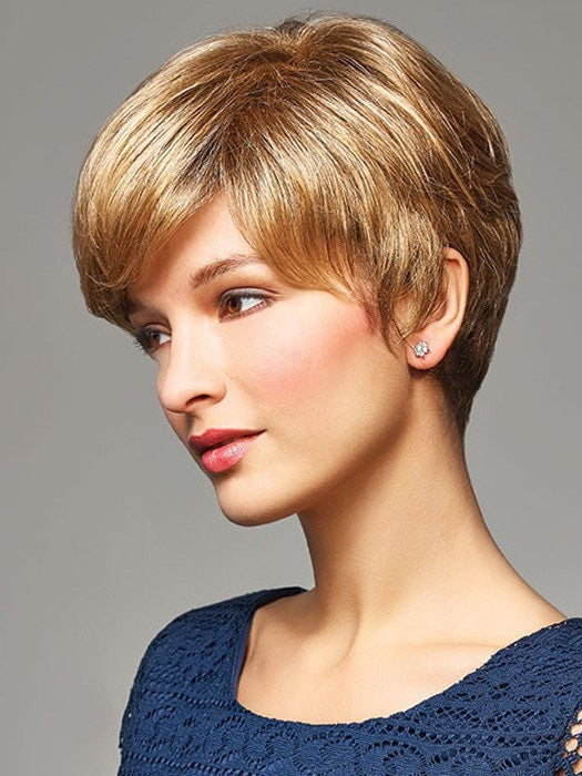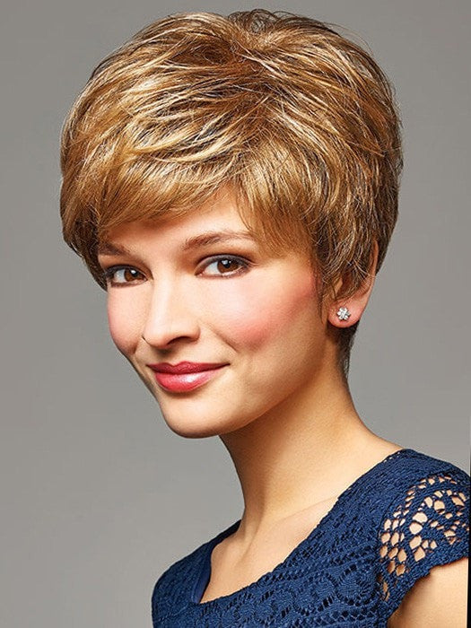 Annette by Henry Margu Wigs is a modification of the traditional wedge cut; slightly fuller on top while gradually tapering at the neckline and ear tabs. Annette wig can be feathered on the face in the front and sides, or brushed back more conservatively.