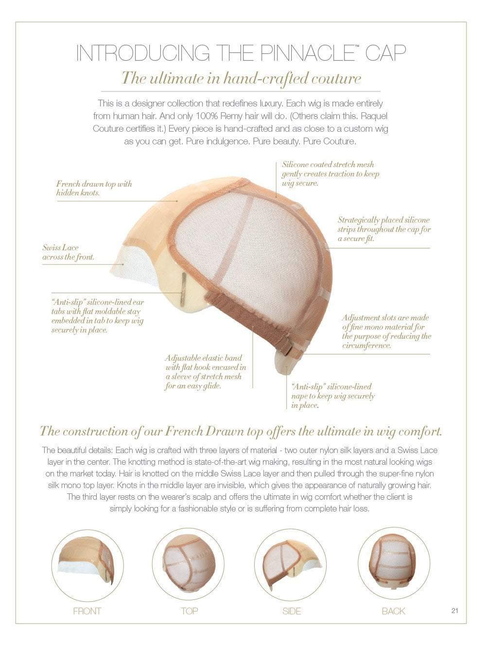 The Calling All Compliments Wig by Raquel Welch has a French Drawn lace front human hair wig. Versatile styling options are a given with this timeless short wig! Soft sweeping lengths at the front can be made to fall gently to the side or styled up and away from the face. Tapered lengths in the back can be worn gently hugging the neck, or sculpted to create a more dramatic effect. 100% cuticle aligned Remy human hair allows for quick, easy styling, and the 100% hand-knotted base affords natural movement.