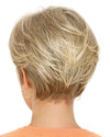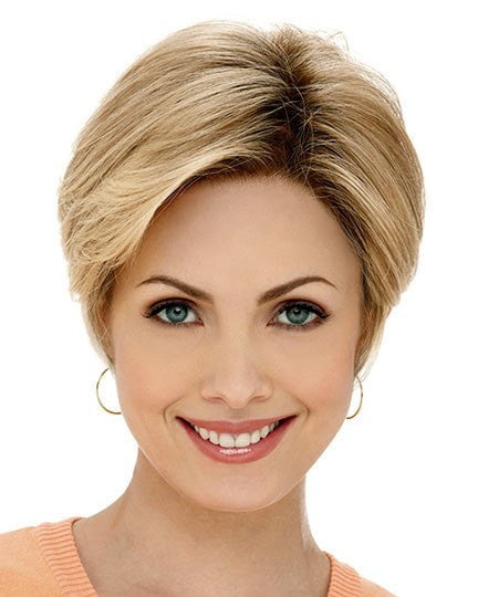 Charlotte by Estetica Designs is a short wedge cut with a voluminous top and long bangs you can brush to the side.The Charlotte wig has a 100% hand tied front line made with extra thinlace film for a natural and customized fit.