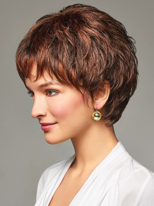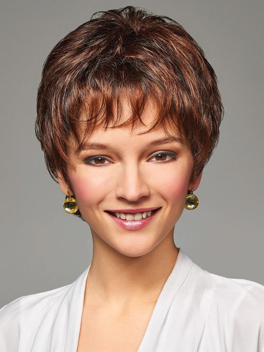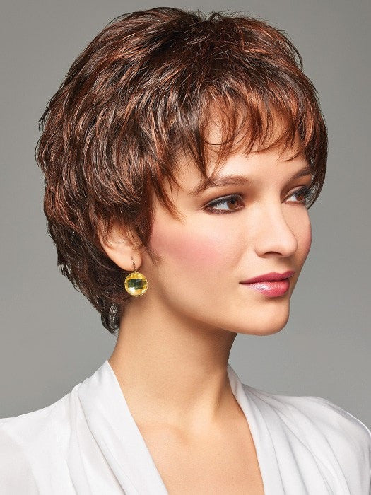 Charlotte by Henry Margu is a short cut with a natural look and styling options. The cap is designed with a lace front and monofilament top. The lace front feature allows you to style the hair up and away from the face. The monofilament top creates the look of your scalp where you part it and mimics natural fullness.