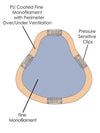 - Polyurethane Perimeter - A polyurethane strip goes around the perimeter of the base and contains 4 pressure sensitive clips. The clips can be removed so that adhesive can be applied.