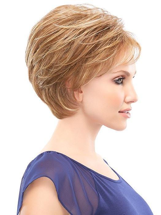 Elsa is a short, versatile, and classically cut heat styleable synthetic wig. Longer layers at the crown add a polished and graceful look. The wispy side bang gives a subtle and face-framing fringe that provides coverage. It is designed with a combination of the best lace front and an open wefted cap to keep it natural and affordable. Add curl or waves for a completely different look.
