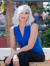 Emma by Envy is a long textured bob made with a blend of human hair and heat-friendly synthetic fibers. The soft face-framing waves are accentuated by a stunning lace front that allows you to wear this style off the face.