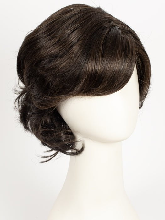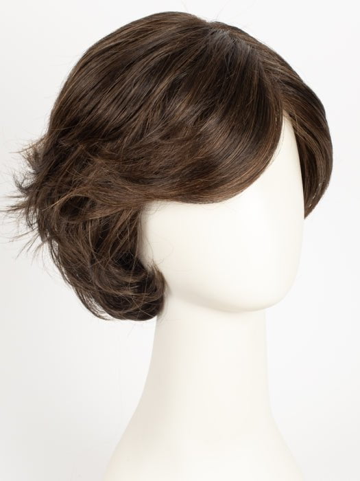 The ready-to-wear lace front is 1 ½” deep and creates a natural-looking hairline that allows you to style the hair off of the face. The monofilament part is located on the left and can be adjusted in the pre-selected hand tied area. It is sheer to blend in with all skin tones making it a must have feature. With lots of texture and layers, this unique cut is flattering and on trend.