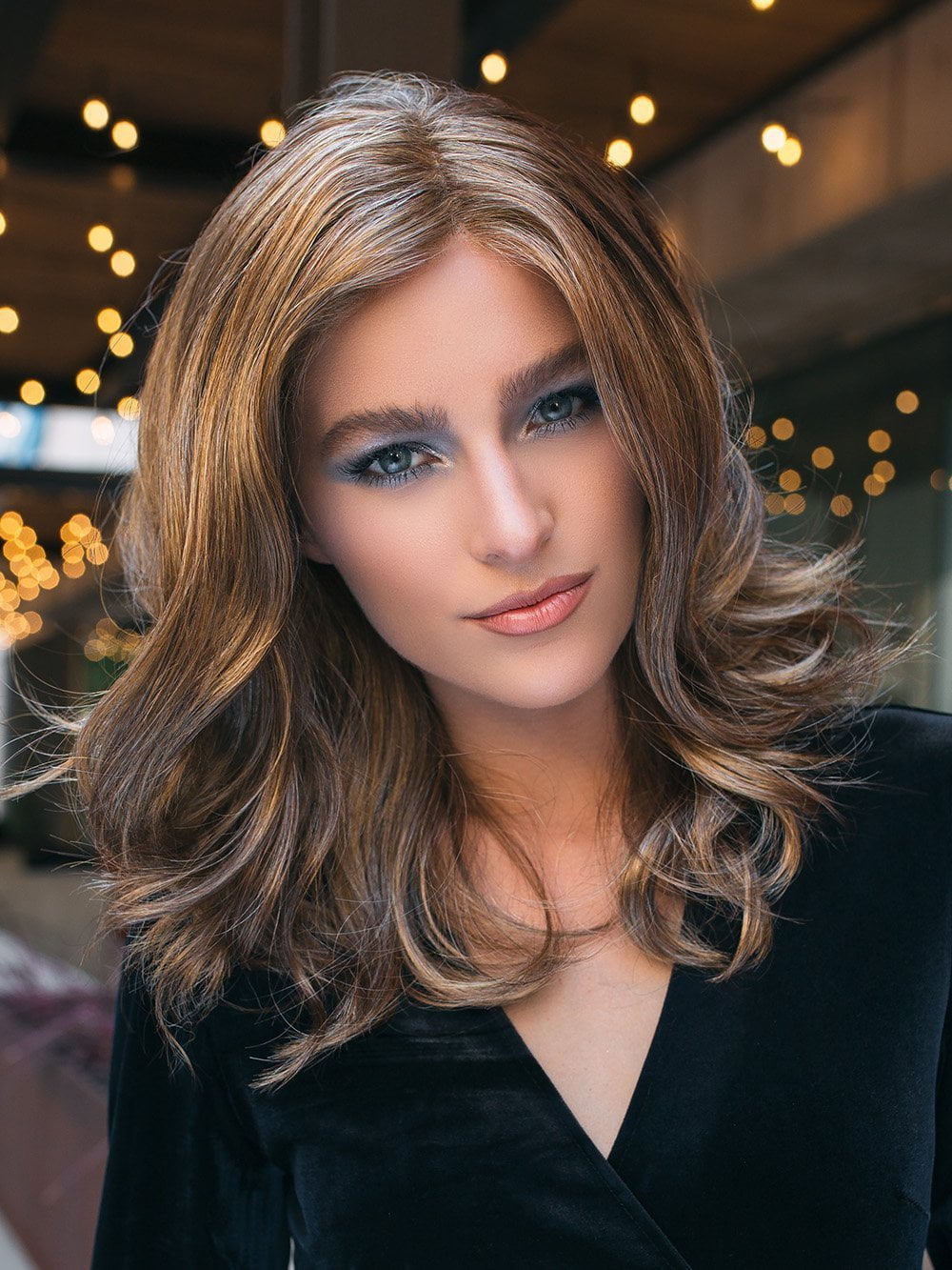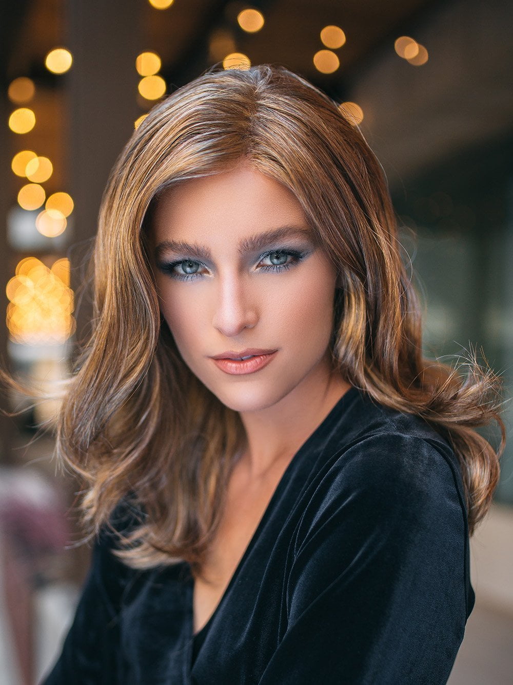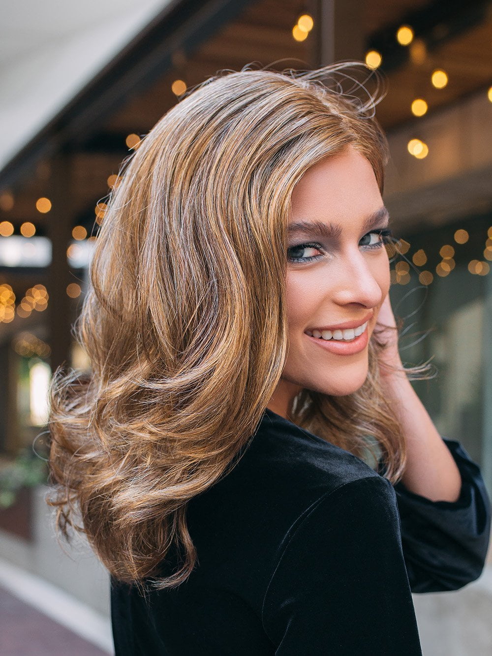 The Fashion Staple Wig by Gabor has soft, feathered layers abound in this dynamic long style. The sheer lace front along with the monofilament part allow the long fringe to be worn swept away from the face for a sophisticated look. Layered ends throughout the sides and back add a flattering silhouette that keeps the look light and easy.