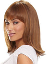 This synthetic wig with bangs has a very comfortable Double Monofilament Top construction, letting you part in the middle or sides, creating the illusion of natural hair growth. Watch Jon Renau Flame video review for more details.