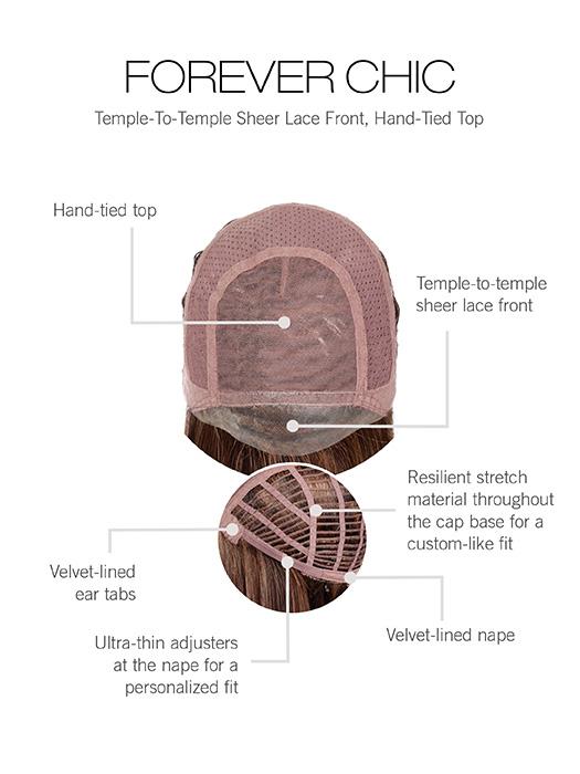 Forever Chic by Gabor is a straight wig with razor-cut, tapered layers. This style is the perfect length, falling right below the shoulders. Also, this synthetic wig features an extended lace front and fully hand-tied top, meaning you're able to part the hair wherever your heart desires.