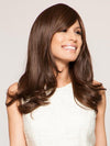 Front Page by Christie Brinkley is a long, loosely waved, and heat-friendly synthetic wig with full bangs. This limited edition style frames the face making it flattering for all face shapes. The Excelle synthetic fiber allows you to change the style using your favorite heated styling tools. The hand-tied monofilament part gives the look of your own hair growth. The long layers and bang can be cut and styled to change up the look.