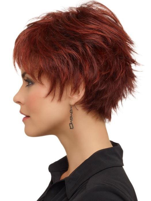Genny wig by Envy Wigs is a textured short pixie style. Sassy razored layers throughout the cut create maximum volume and lift. Wispy bangs and longer layers along the sides, frame the face perfectly. Genny wig has a monofilament top that gives the appearance of natural hair growth from the scalp, adding to the natural look and believability. The stretch open cap construction is lightweight, cool and comfortable making Genny ideal for all day wear.