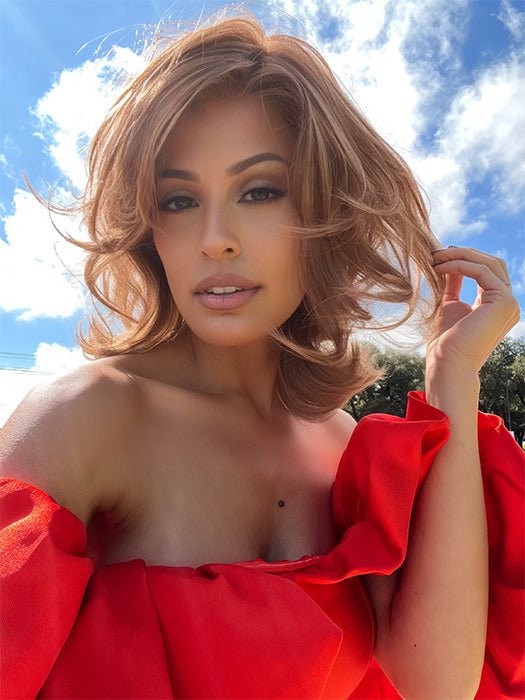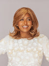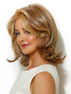 Goddess by Raquel Welch has a Sheer Indulgence lace front for the option of off-the-face styling and a monofilament top for varied parting choices. This barely waved, layered, shoulder length silhouette can also be curled for a more dramatic effect. This style is very much like Raquel's own natural hair... the Goddess herself!