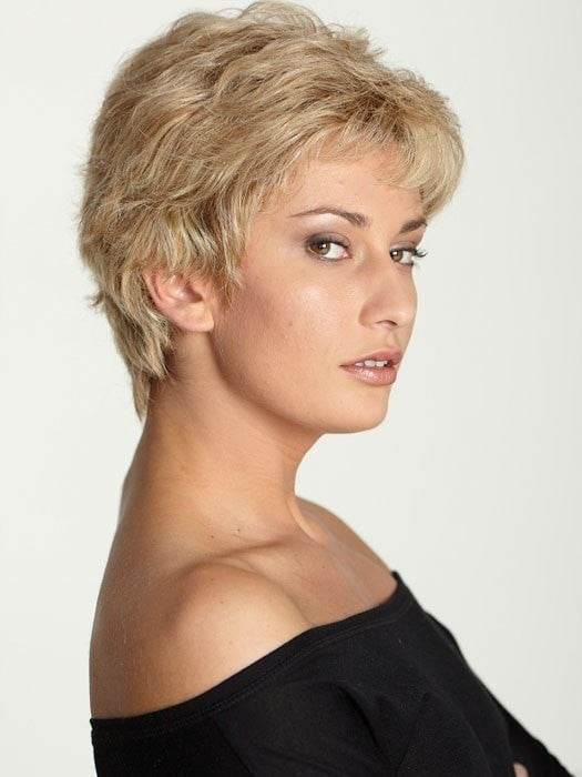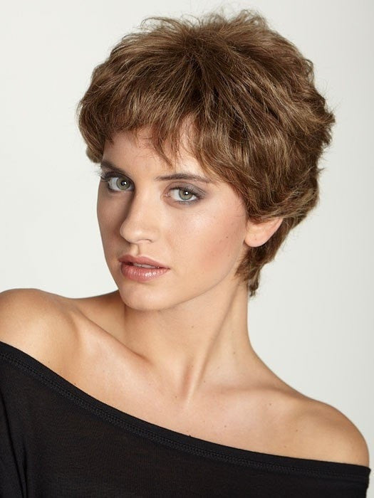 (HH) Rose by Aspen Wigs is a classic short pixie wig made out of 100% human hair. HH Rose wig has close-cropped sides and nape with a bang. It comes in an average cap size on a basic (traditional) cap construction.
