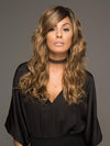 Hollywood Honey by Forever Young is a crimped and waved long style with a skin part. The smooth bang frames the face while the wave and crimp cascades down. The part is made with a material that mimics the look of your own hair growth and scalp. This wig can be styled in a low pony or loose updo.