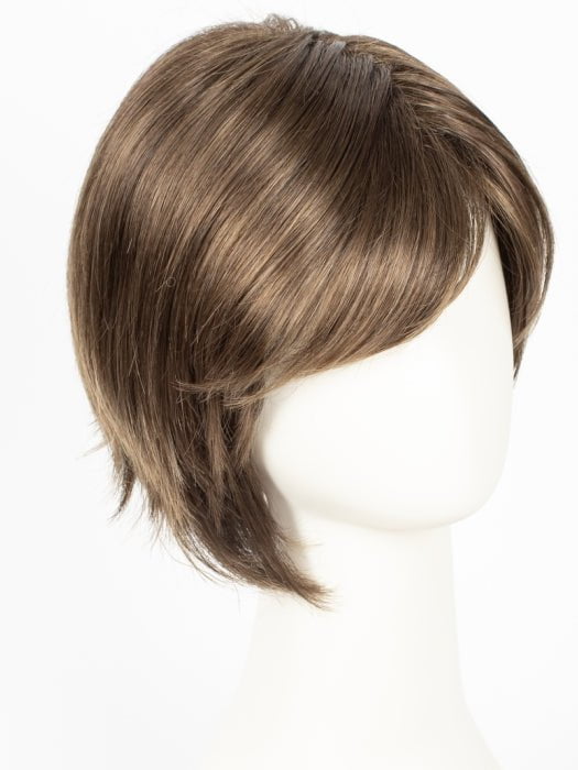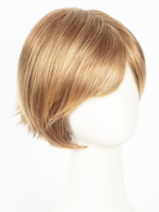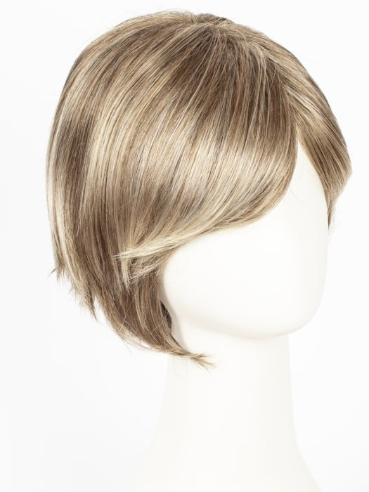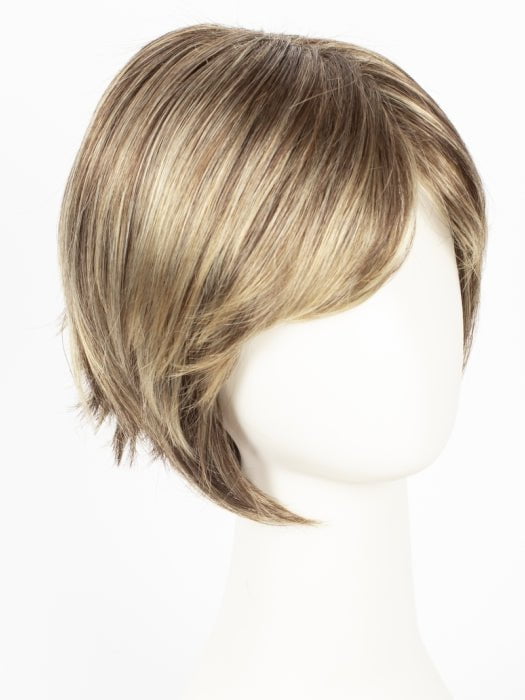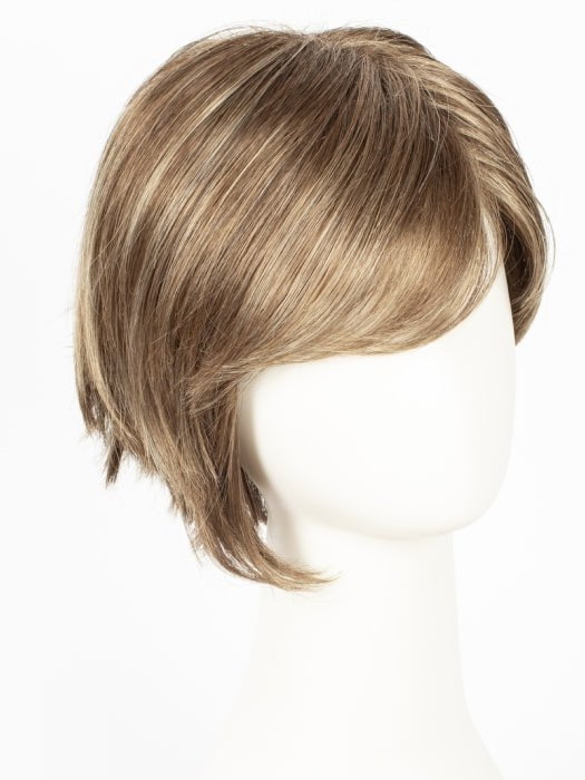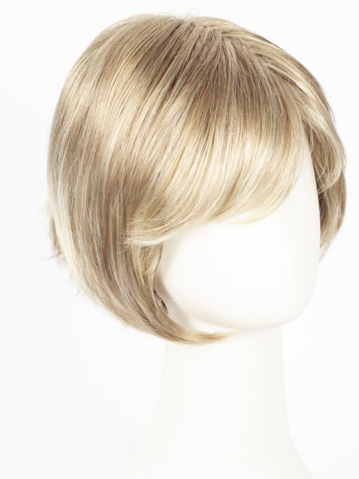 I have ordered many (probably 40 ) wigs in all different lines but this is my overall favorite! It has no lace front or mono top (just open cap) but it fits me perfectly and the small amount of permatease in the front is easily hidden with the bangs. I also pull the longer bang layer back with a small clip to the side. I trimmed/thinned these bangs a little myself. I love the Praline Mist 19 color as it is sort of a dark blonde with a tiny hint of gold (not much)with a bit of edginess along the stacking at the nape. Additionally I like that it was not rooted so I could spray a little dark blonde root spray and root to my liking! It’s a cutie for sure!