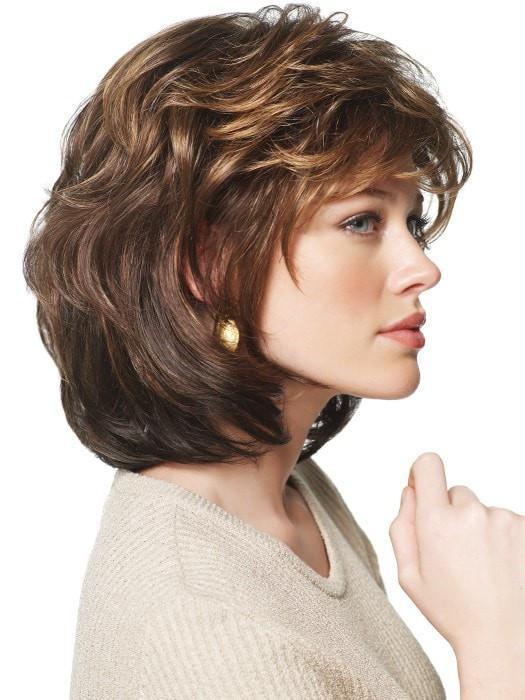 A medium length page with lots of body - that's Invitation by Gabor wigs. This inviting hairstyle has beautifully blended layers and soft waves throughout for a feminine touch. All of the layers make the cut easy to style and completely versatile. Using your fingers you can create lots of volume or smooth down for a softer look.