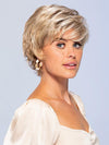 Jazz by Jon Renau is a short wig with an ultra-lightweight cap, layered sides and crown, and a flipped-out nape. Finger style your way to fun in this short, playful shag. You'll dance to your own beat with flipped out layers and a fuss-free construction. Jazz is made with pre-styled, ready-to-wear synthetic hair that looks and feels like natural hair. The open wefting in the cap creates better air ventilation, which provides more coolness on the scalp. It's breathable and lightweight for a more comfortable fit. Jazz also comes in a petite cap size, as well as a "Mono" version with a double monofilament top.