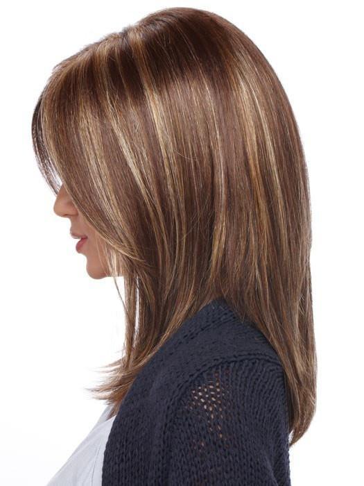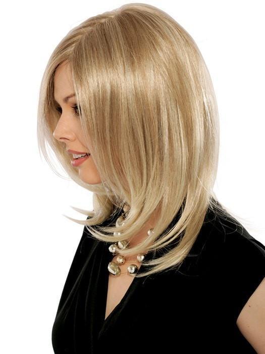 Jewel by Estetica Designs Wigs is a straight layered razor cut wig combined with a monofilament top that allows natural parting in any direction.