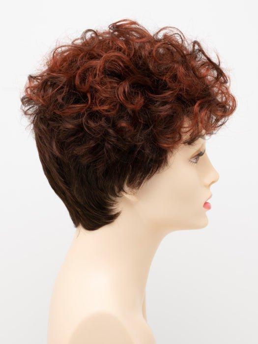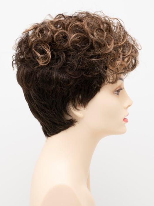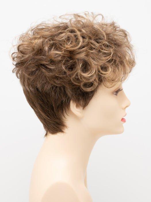 Kaitlyn by Envy is a short, trendy, and curly synthetic wig. You can shake it and wear it tousled or tightly curled. The layered side bang can be cut or trimmed by your stylist. The layered curl provides full coverage along the hairline. You can enhance the curl and texture by shaping and re-curling with your fingers.